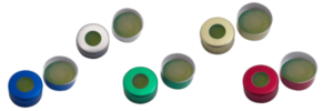 • durch die feste Verbindung der PTFE-Folien mit der Fluorpolymer-Lochscheibe, fällt das eingelegte ZeroSept®AIR-Septum auf dem Transportweg nicht aus den vormontierten Verschlüssen und beim Durchstechen mit der Kanüle können die glatten, dünnen Folien nicht mehr in die Probe gedrückt werden.