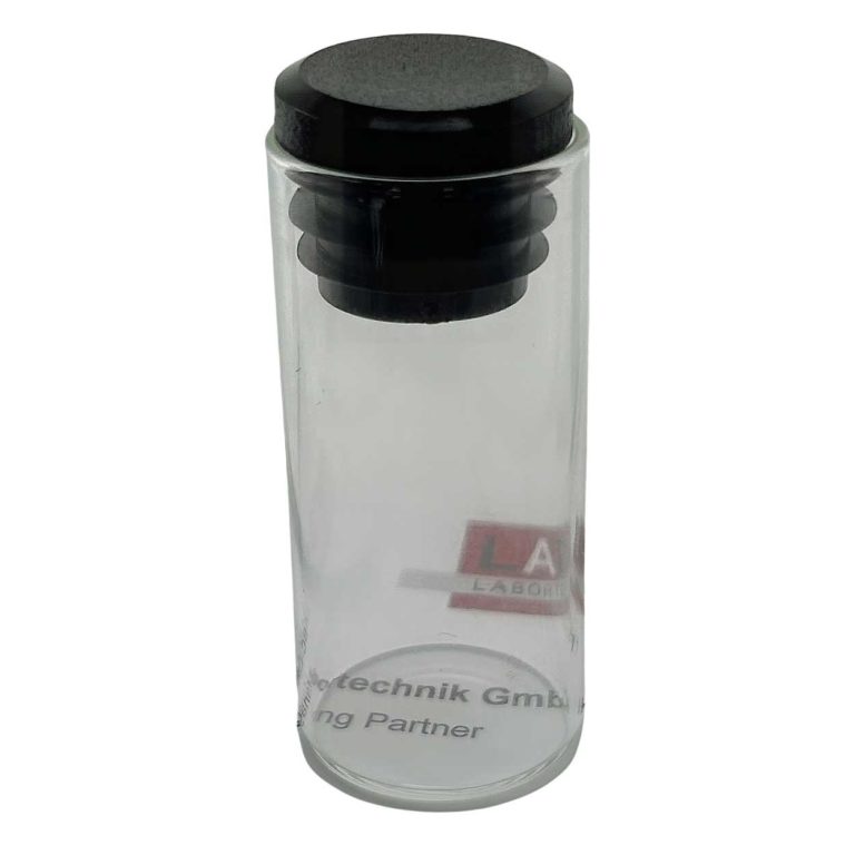 Our specified flat-bottom glasses with the dimensions 48x22mm (height x diameter), a wall thickness of 1mm made of clear glass are ideal for use in conjunction with various NIR spectrometers. They comply with the 1st hydrolytic class and offer a special bottom that is 100% optoelectronically controlled and has a mirror bottom.