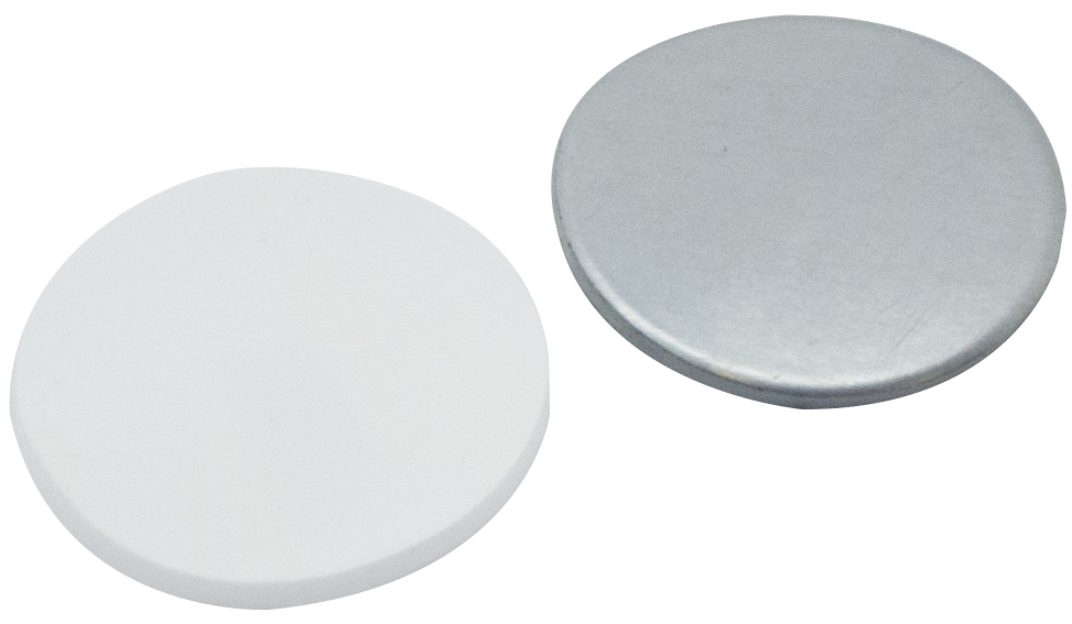 Septum-Dichtung Silikon/Alu-kaschiert für GL14 Schraubkappen (Loch- oder geschlossen Kappen) Ø = 12,5 mm, Silikon weiß/Aluminium, 50 ° shore A, 1,0 mm; VE = 100 Stk. |